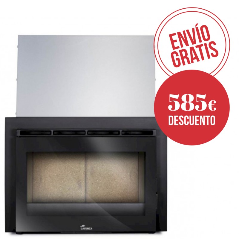 La estufa insertable calefactora Lacunza Sakan 20 ECO Serp cuenta con puerta, base y separador hogar de fundición. Revestimiento hogar refractario más paila de acero con aislamiento exterior de serie. Incluye además un serpentín seguridad y válvula descarga termica.