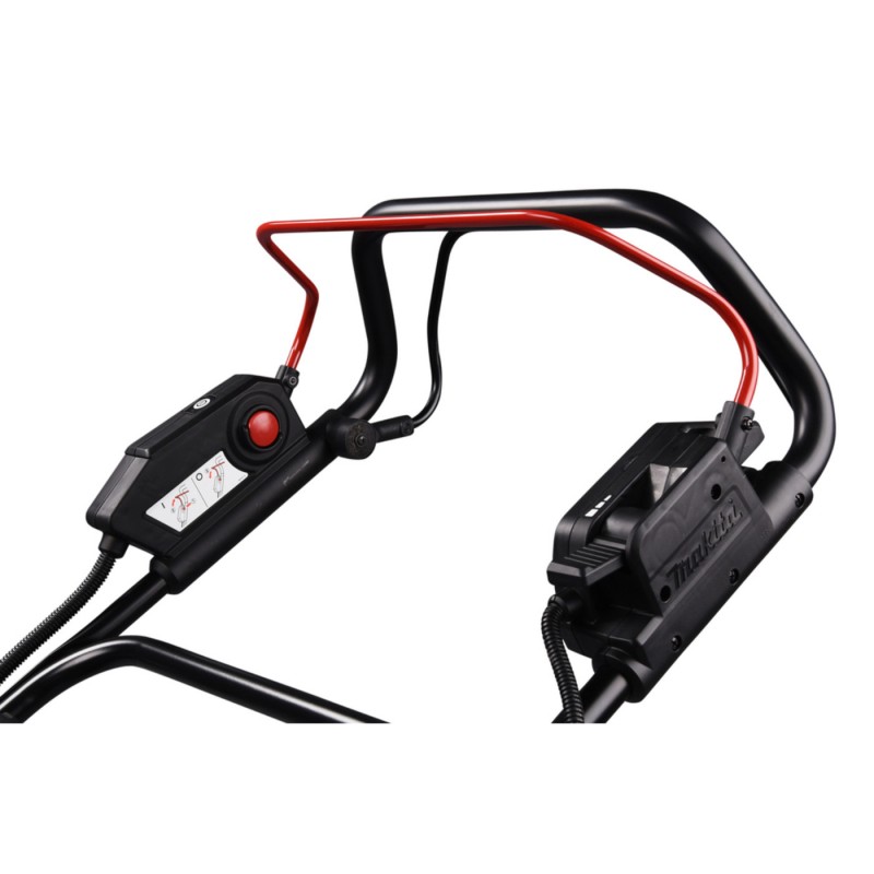 Cortacésped a Batería Makita DLM539 18V x 2 LXT Cortacésped pensado para terrenos de hasta 800m². Cuenta con tracción y grandes ruedas que mantienen una mejor tracción en terrenos fangosos o con baches. El diseño interior de la cubierta es aerodinámico para mejorar la recogida del césped. 4 en 1 (Cortar el césped / Recoger la hierba / Triturar / Descarga lateral) Ancho de corte 53 cm