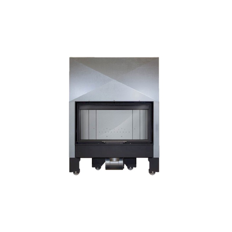 Monobloque Lacunza Itaca 100 ECO T CV forjada en acero, puerta guillotina, con hogar en thermotte y base de hogar en fundición con cenicero. Sistema de doble combustión y toma de aire exterior (120 mm) canalizable. Consta de 4 salidas superiores para aire caliente. Versión con turbina 800 m3/h