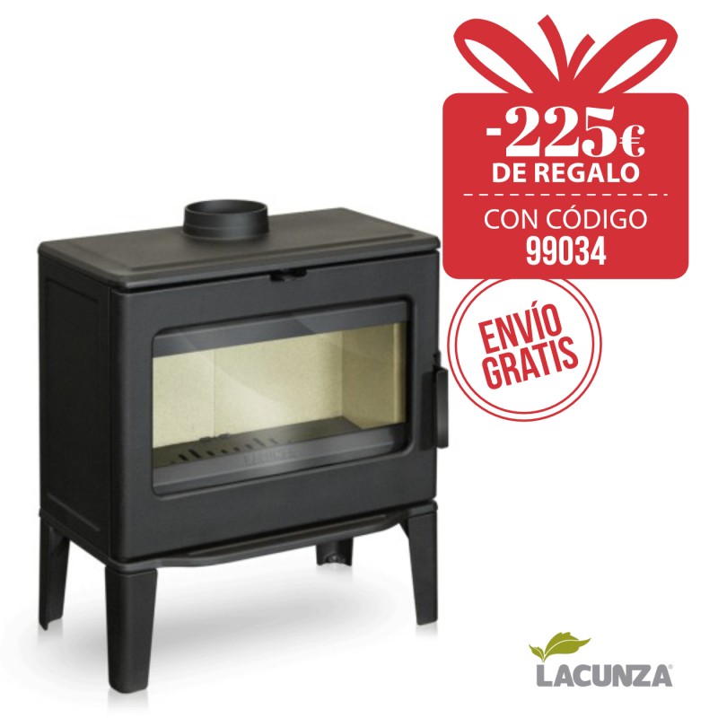 La estufa de leña Lacunza Bidart está creada en fundición con un interior en vermiculita. Consta de un sistema doble de combustión y un sistema de cristal limpio. Con opción de kit interior en hierro fundido.