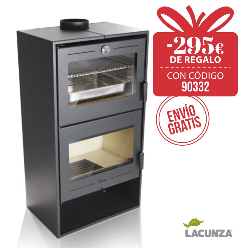Estufa de leña Lacunza Altea con Horno: Calor y cocina en un solo equipo. Fabricada en acero de alta resistencia, la Altea combina una potente calefacción con un práctico horno superior de acero inoxidable. Incluye parrilla de asados y un sistema de extracción de vapores del horno.