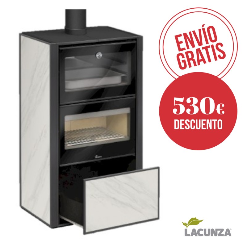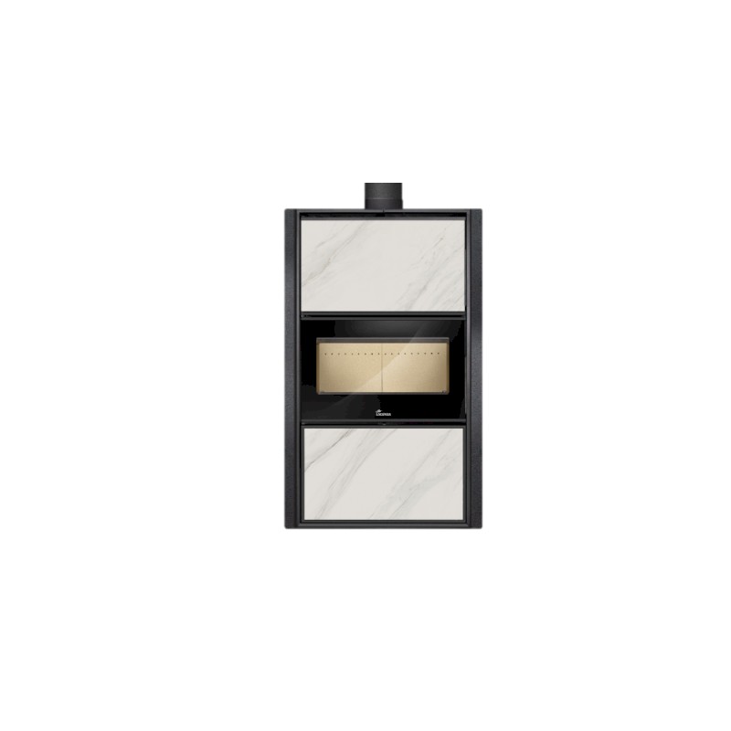 La Bergen es una estufa de alto rendimiento fabricada en acero que redefine el concepto de calefacción con horno. Su gran anchura permite una visión panorámica del fuego espectacular y el uso de troncos de gran tamaño. Equipada con un horno de acero inoxidable de alta capacidad