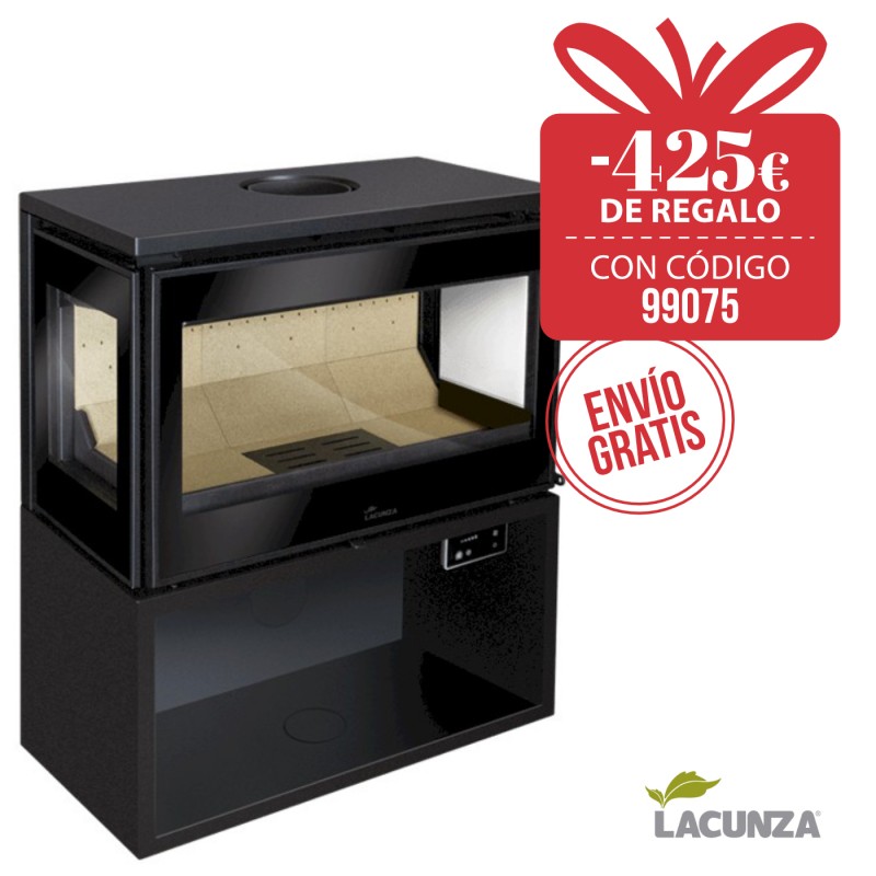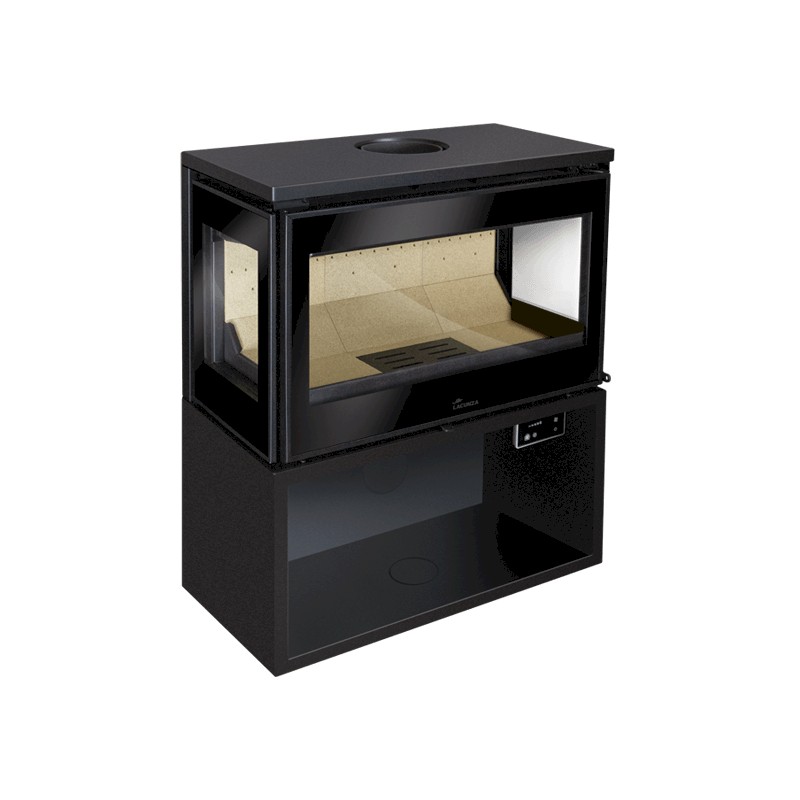 La estufa de leña Lacunza Paris 700 Clid ST (Sin turbina) está forjada en acero y consta de tres caras para una visión del fuego total desde distintos ángulos. Versión con leñero, sistema de doble combustión y cristal limpio.
