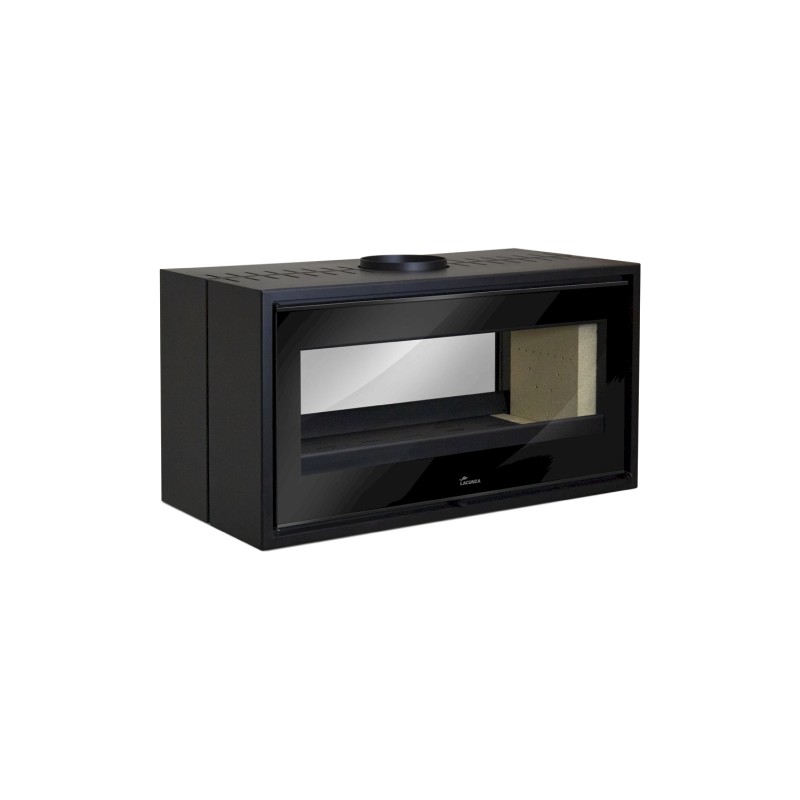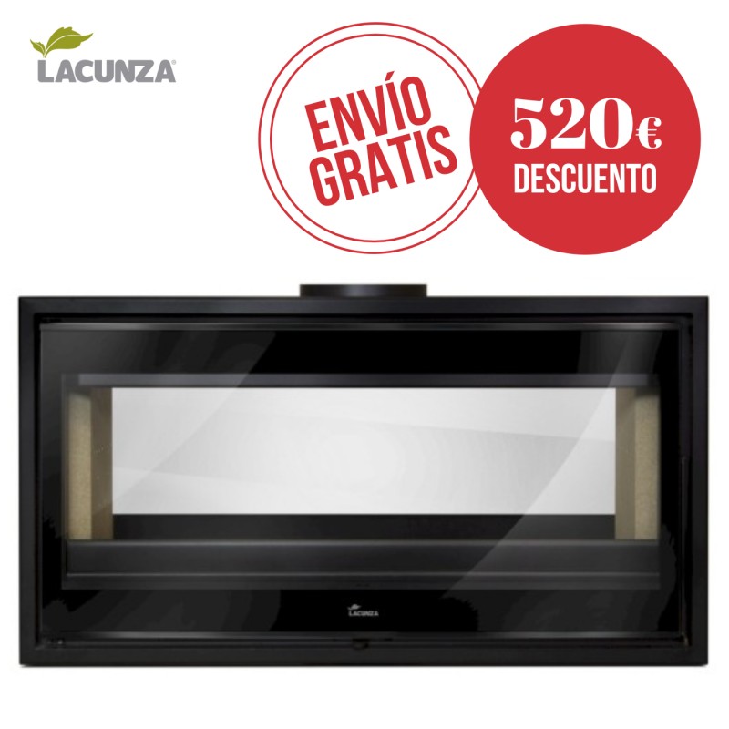 La estufa de leña Lacunza Verona 1000 está forjada en acero con hogar en vermiculita y parrilla de fundición. Consta de dos cristales (frontal y trasero) diseñada para ofrecer la mejor transparencia en el ambiente y separar distintas estancias si se desea.