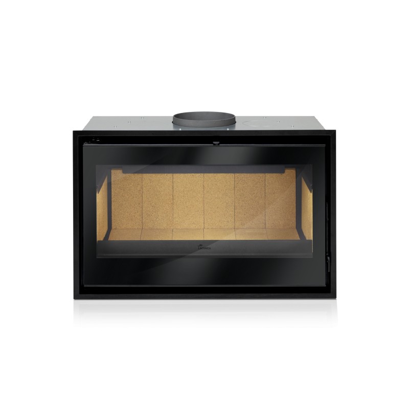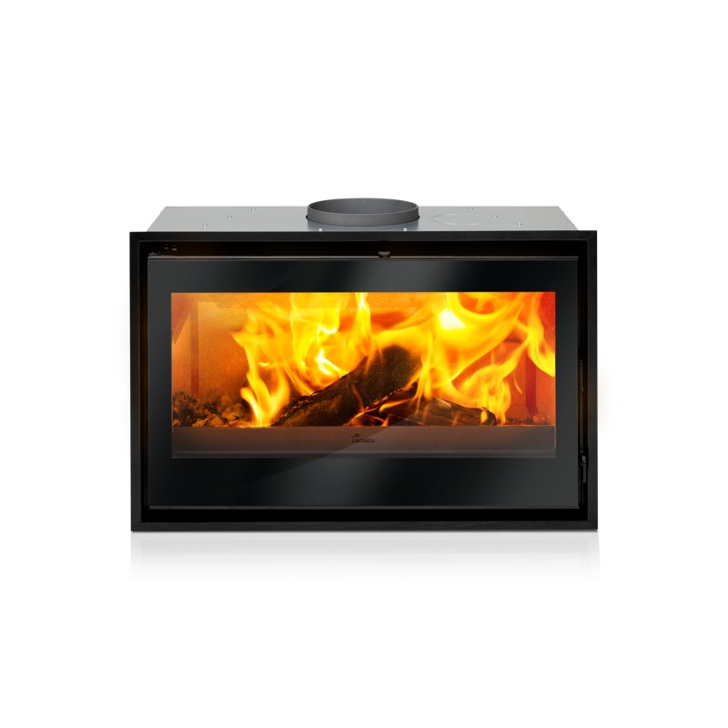 Lacunza Aroa 800 es una chimenea insertable de acero con interior de ladrillo refractario, deflector de acero inoxidable y puerta con cristal serigrafiado. Cuenta con un ventilador tangencial de 105m3/h (muy silencioso), y un sistema de cristal limpio.