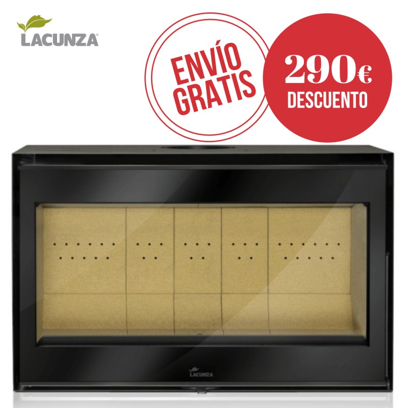 Lacunza Adour 800 ST (Sin turbina) es una chimenea insertable de acero con interior de vermiculita de 3 cm de espesor y parrilla de hierro fundido con cajón cenicero.