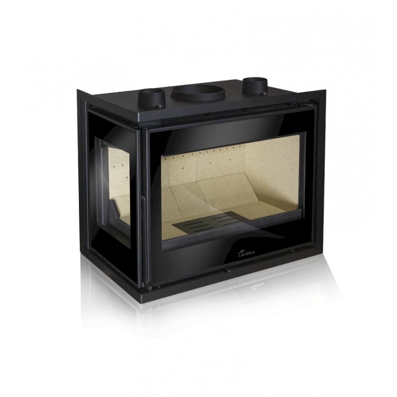 Lacunza Adour 600 CLI es una chimenea insertable de acero con interior de vermiculita y cristal en el lateral izquierdo. Cuenta con una turbina centrífuga de 125m3/h desconectable, potenciómetro con mando a distancia (5 velocidades y On/Off) y un sistema de doble combustión.