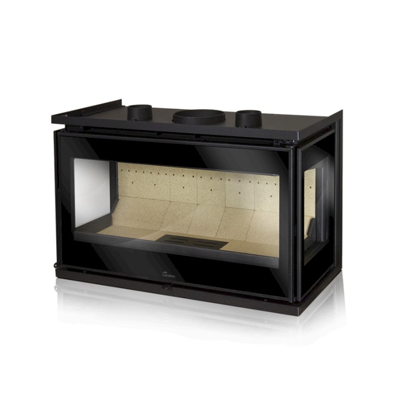Lacunza Adour 800 CLID es una chimenea insertable de acero con interior de vermiculita y cristales a ambos laterales. Cuenta con una turbina centrífuga de 125m3/h desconectable, potenciómetro con mando a distancia (5 velocidades y On/Off) y un sistema de doble combustión.